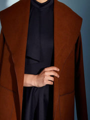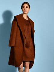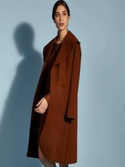 Abrigo Luciana, manga larga, con solapa ancha, largo hasta la rodilla, con bolsillos. Confeccionado en paño cachemir.