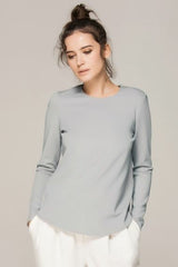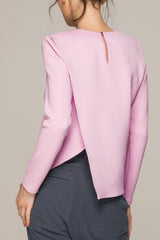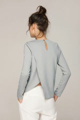 Blusa Sari, manga larga, escote redondo, corte cruzado en espaldar