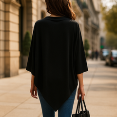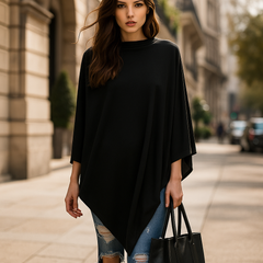 Poncho  Yana, corte en punta. Confeccionada en tejido de punto.