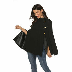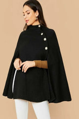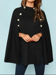 Capa con cuello alto, Aberturas laterales y botones, confeccionada en paño