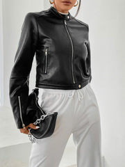 Chaqueta corta Cate, con cuello, cremallera, manga larga, con bolsillo de cremallera, cremallera en la manga