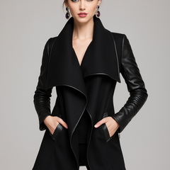 Chaqueta Rose. mangas largas, con bolsillos con bordes en cuero sintético. Confeccionada en paño cachemira y cuero sintético.