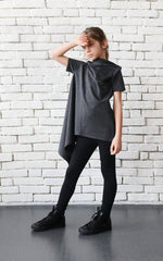 Blusa Luciana, manga corta asimétrica confeccionada en tejido de punto.