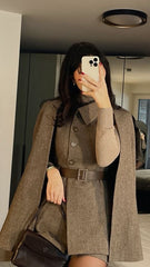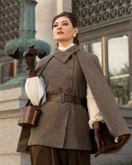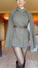 Chaleco y capa separables, chaleco con cuello cruzado y bolsillo, confeccionado en paño
