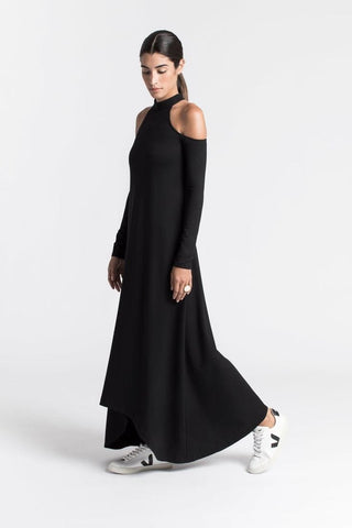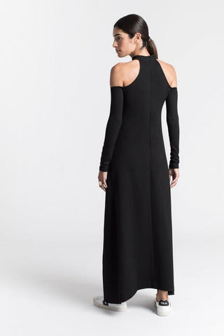 Vestido corte ajustado, escote redondo, manga larga, cinturón, confeccionado en tela gamuzada y cuero sintético