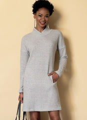vestido manga larga con bolsillo lateral, cuello alto, Confeccionado en punti roma