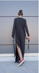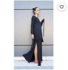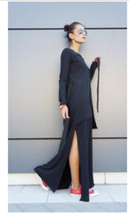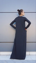 Vestido largo, asimétrico, con bolsillos confeccionado en tejido de punto.