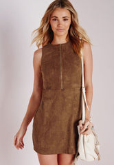 vestido sin manga con cremallera, escote redondo, Confeccionado en Tela gamuzada