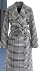 Abrigo cruzado con cinturón, solapa, Confeccionado en bengalina tipo paño